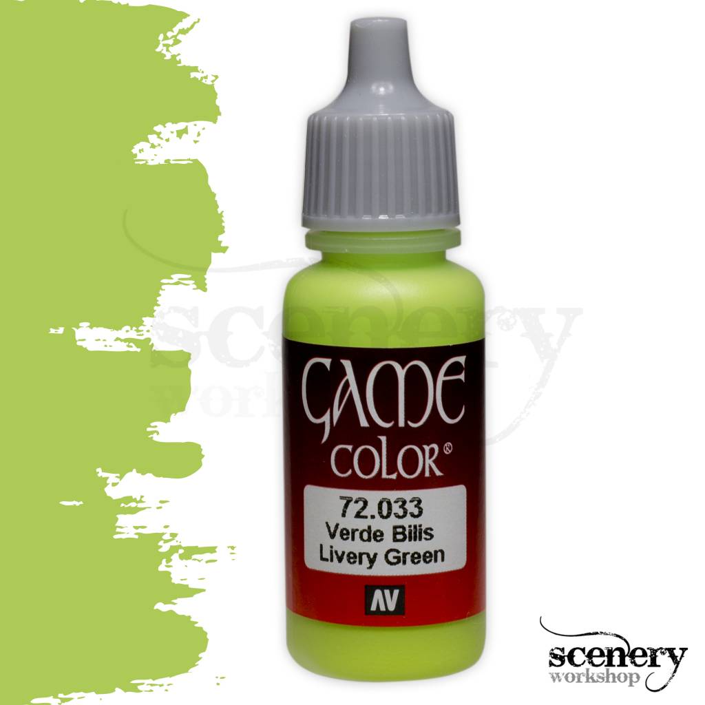 Vallejo Game Color Livery Green maakt deel uit van het Game Color programma van het merk Vallejo en is een limoengroene acrylverf in een 17ml. eyedropper potje.