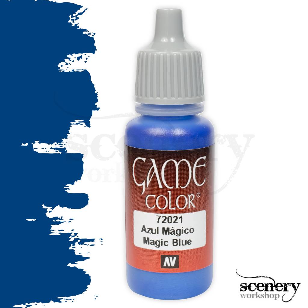 Vallejo Game Color Magic Blue maakt deel uit van het Game Color programma van het merk Vallejo en is een blauwe acrylverf in een 17ml. eyedropper potje.