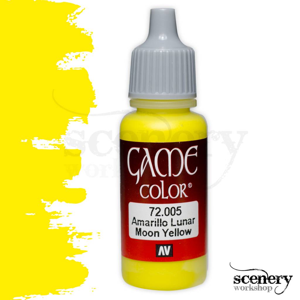 De kleur van Vallejo Game Color Moon Yellow (72.005) is vergelijkbaar met: Citadel Bad Moon Yellow 61-11; Reaper Master Series Paints Clear Yellow 9095; Vallejo Model Color Light Yellow 70949; Coat d'Arms: Dusky Yellow (146).