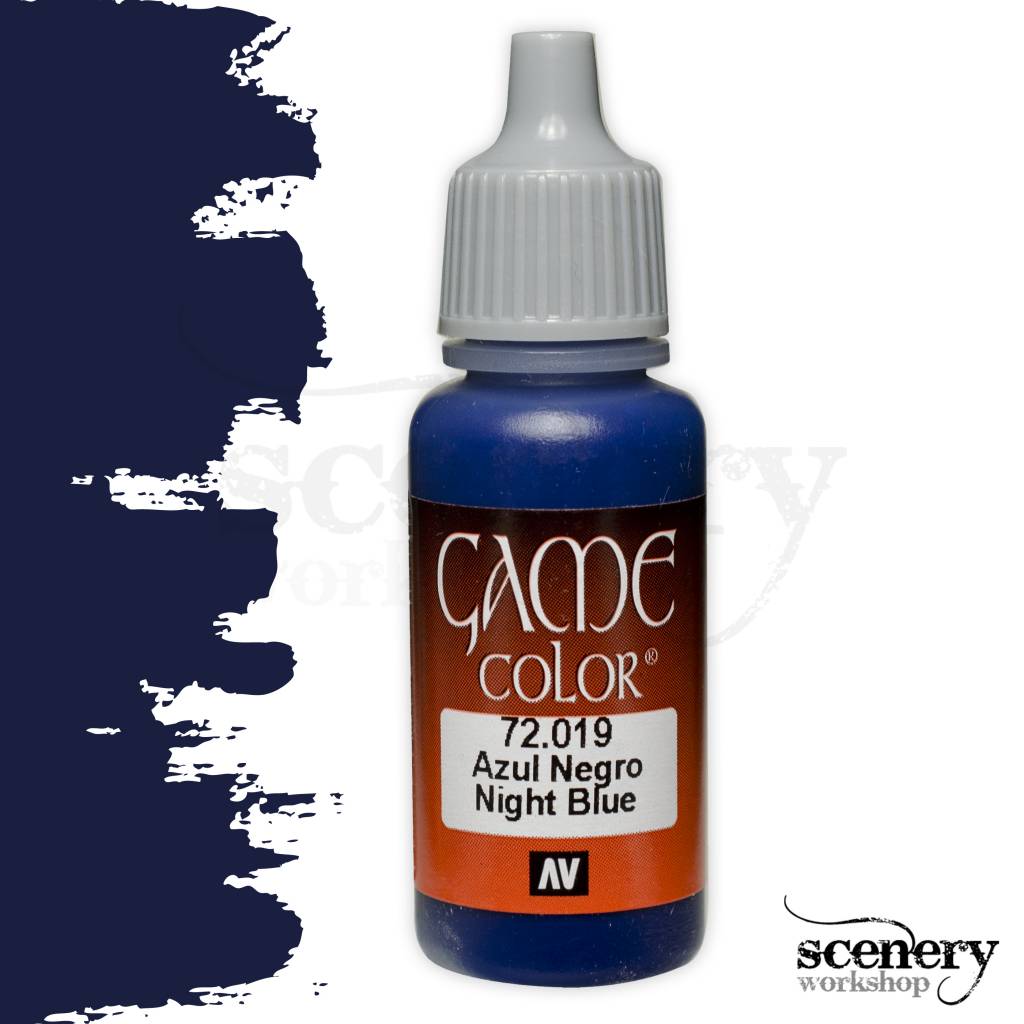 Vallejo Game Color Night Blue maakt deel uit van het Game Color programma van het merk Vallejo en is een diepblauwe acrylverf in een 17ml. eyedropper potje.