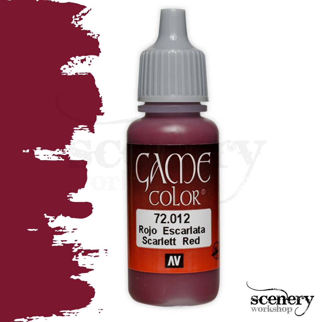 Vallejo Game Color Scarlet Red maakt deel uit van het Game Color programma van het merk Vallejo en is een dieprode acrylverf in een 17ml. eyedropper potje.