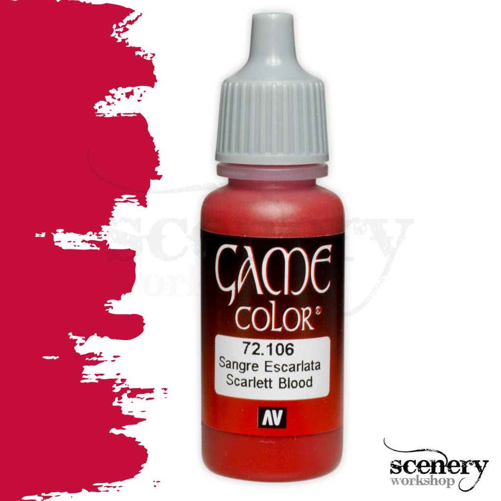 Vallejo Game Color Scarlett Blood maakt deel uit van het Game Color programma van het merk Vallejo en is een rode acrylverf in een 17ml. eyedropper potje.