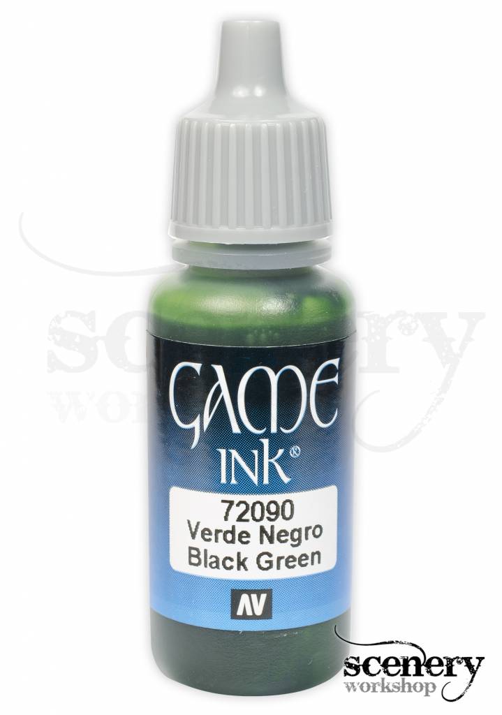 Vallejo Game Ink Black Green maakt deel uit van het Game Color programma van het merk Vallejo en is een donkergroene acrylverf in een 17ml. eyedropper potje.