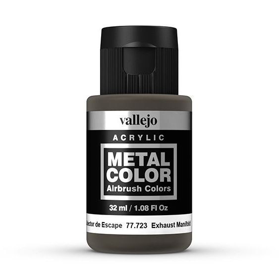 Vallejo Metal Color Exhaust Manifold (77723) is een donkermetaal kleurige Acryl Airbrush verf dat onderdeel is van de Vallejo Metal Color reeks. Deze metal kleuren op waterbasis zijn speciaal ontwikkeld voor airbrushing. Voor deze serie zijn nieuwe aluminium pigmenten geselecteerd om een kwaliteit te krijgen die tot nu toe niet mogelijk was in metal kleuren op waterbasis.