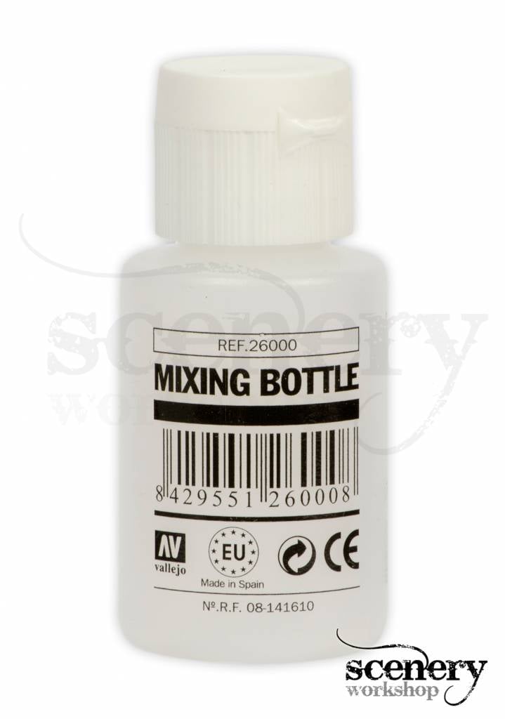 Vallejo Mixing Bottle - Soms heb je van die momenten dat je met een werkstuk bezig bent, bijvoorbeeld een stuk scenery, waarbij je graag eenzelfde kleur steeds wilt laten terugkomen die je zelf gemengd hebt. Dan is een mixing bottle de uitkomst bij uitstek.