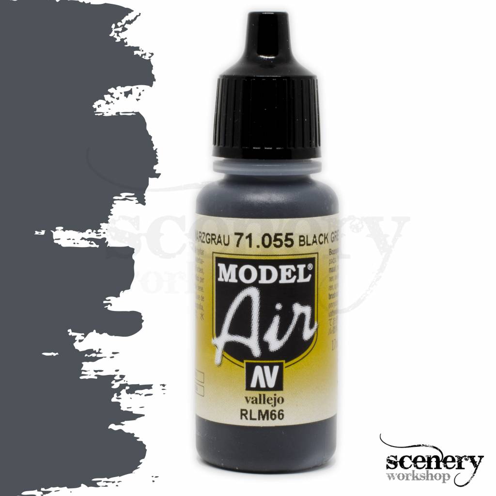 Vallejo Model Air Black Grey RLM66 maakt deel uit van het Model Air programma van het merk Vallejo, speciaal ontwikkeld voor de airbrush en is een zwartgrijze acrylverf in een 17ml. eyedropper potje.