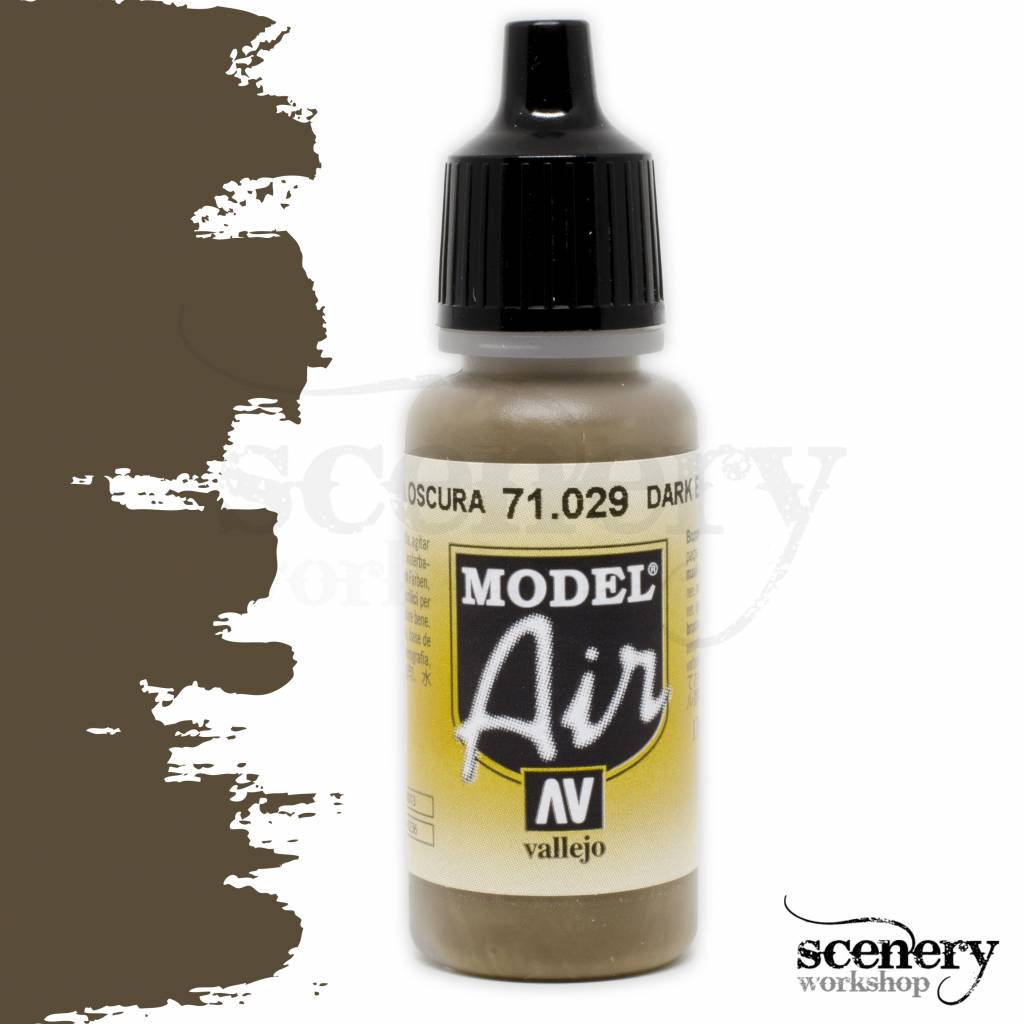 Vallejo Model Air Dark Earth maakt deel uit van het Model Air programma van het merk Vallejo, speciaal ontwikkeld voor de airbrush en is een bruine acrylverf in een 17ml. eyedropper potje.