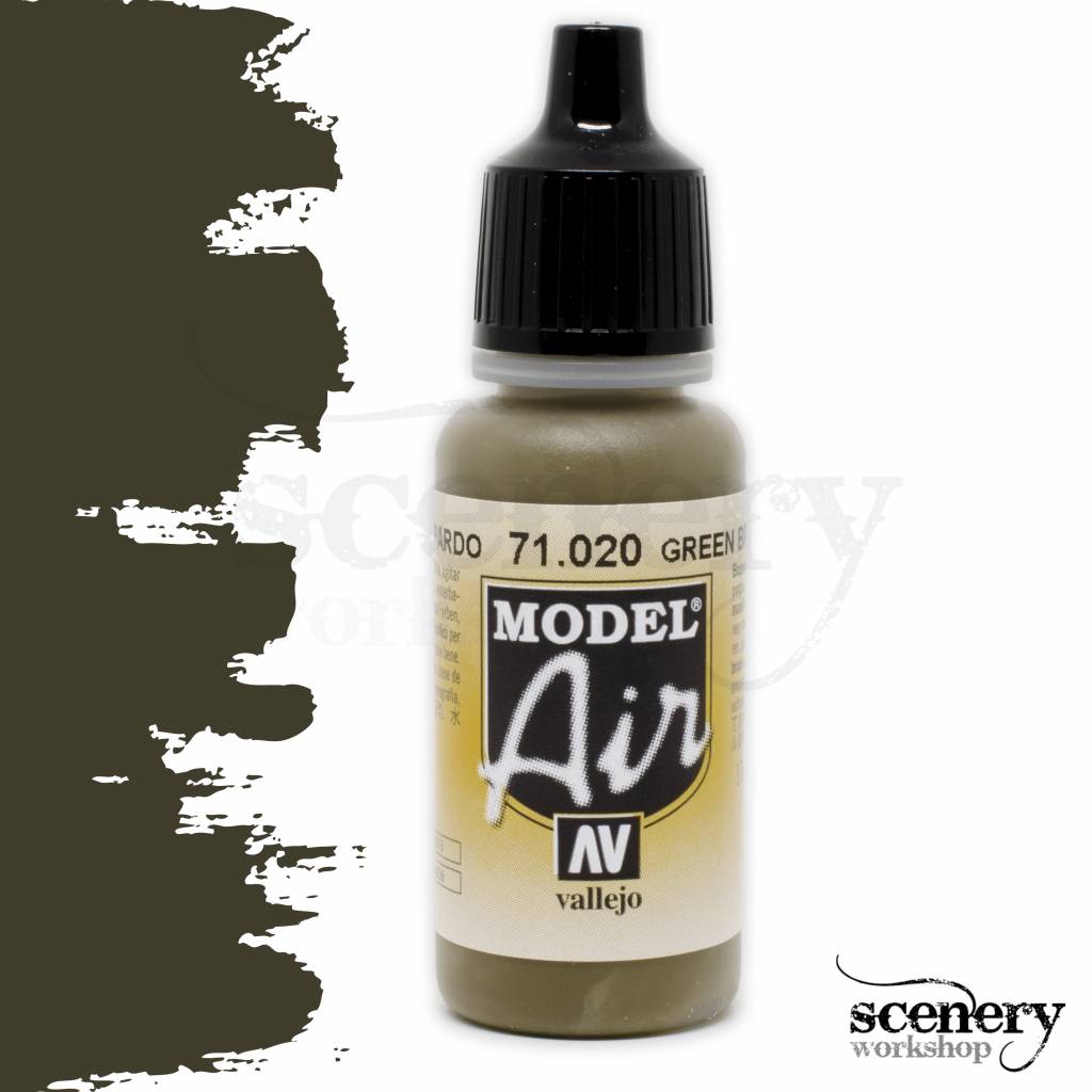 Vallejo Model Air Green Brown maakt deel uit van het Model Air programma van het merk Vallejo, speciaal ontwikkeld voor de airbrush en is een groenbruine acrylverf in een 17ml. eyedropper potje.