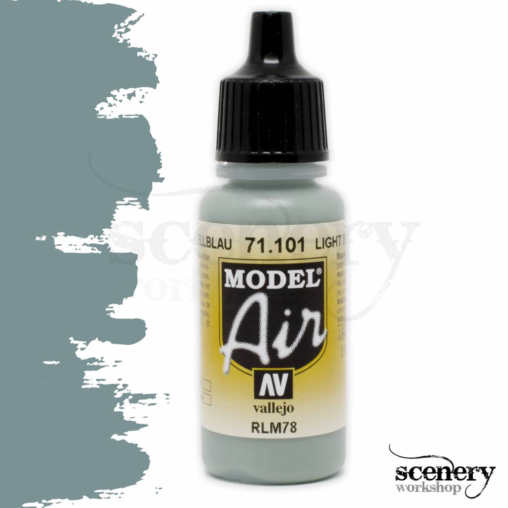 Vallejo Model Air Light Blue RLM78 maakt deel uit van het Model Air programma van het merk Vallejo, speciaal ontwikkeld voor de airbrush en is een grijzblauwe acrylverf in een 17ml. eyedropper potje.