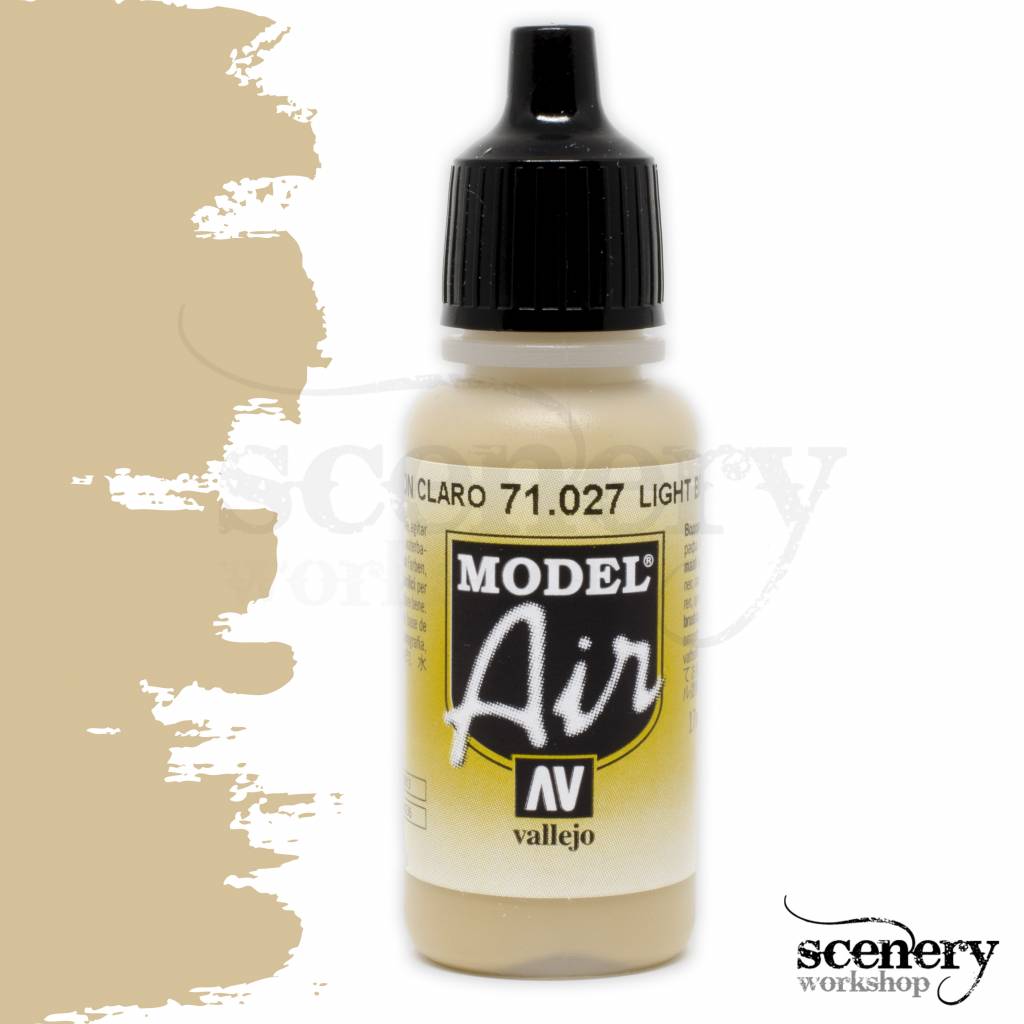 Vallejo Model Air Light Brown maakt deel uit van het Model Air programma van het merk Vallejo, speciaal ontwikkeld voor de airbrush en is een zandbruine acrylverf in een 17ml. eyedropper potje.