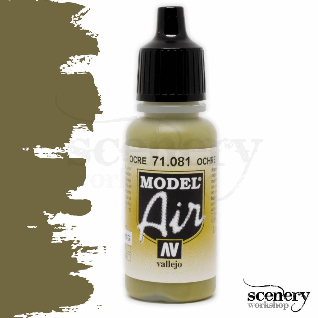 Vallejo Model Air Ochre maakt deel uit van het Model Air programma van het merk Vallejo, speciaal ontwikkeld voor de airbrush en is een groengele acrylverf in een 17ml. eyedropper potje.