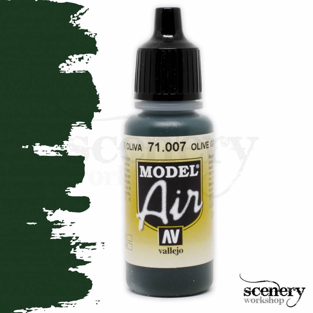 Vallejo Model Air Olive Green maakt deel uit van het Model Air programma en is een donkere olijf groene verf.Â