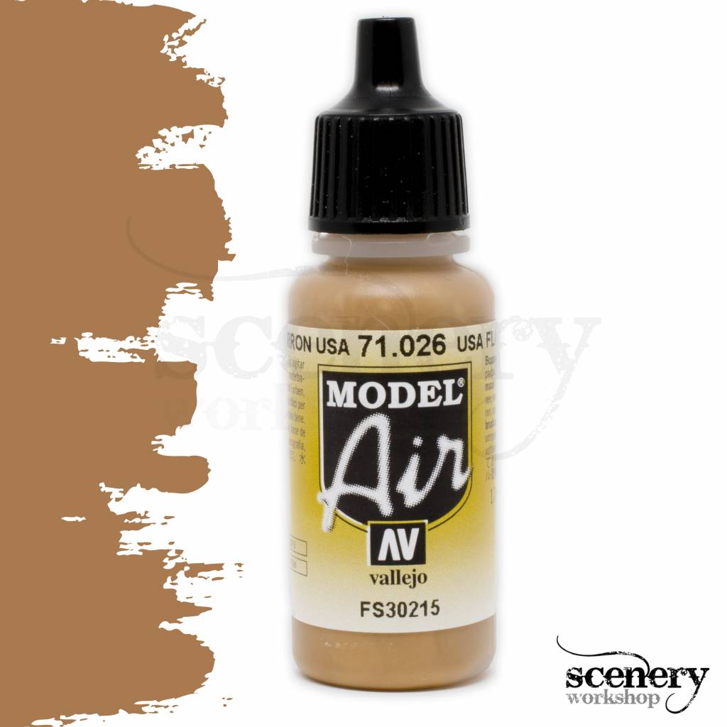 Vallejo Model Air USA Flat Brown maakt deel uit van het Model Air programma van het merk Vallejo, speciaal ontwikkeld voor de airbrush en is een oranjebruine acrylverf in een 17ml. eyedropper potje.