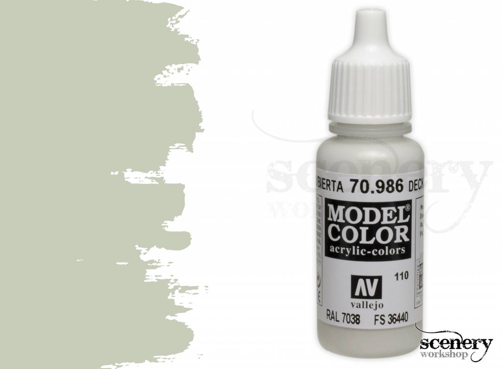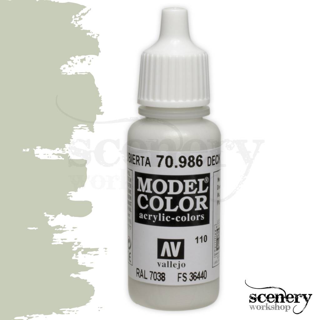 De kleur van Vallejo Model Color Deck Tan (70.986) is vergelijkbaar met: Federal Standard: 36440; RAL: 7038; Gunze H-315; Humbrol 129; Testors Model Master 1730.
