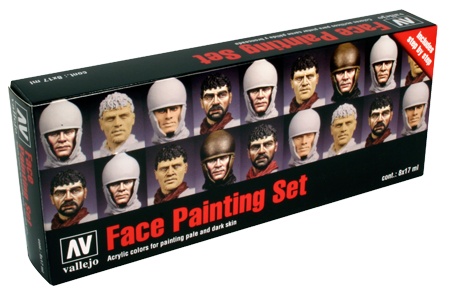 Deze Face Painting Set bevat 8 verschillende 17ml. Vallejo Model Color kleuren om de verschillende huidstinten te kunnen maken. De set bevat naast de 8 kleuren ook een gedetailleerde "Face Painting" stap voor stap instructie van Jaume Ortiz.