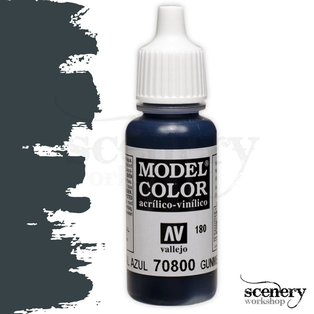 Vallejo Model Color Gunmetal Blue maakt deel uit van het Model Color programma en is een donkergrijze verf met een blauwe gloed.