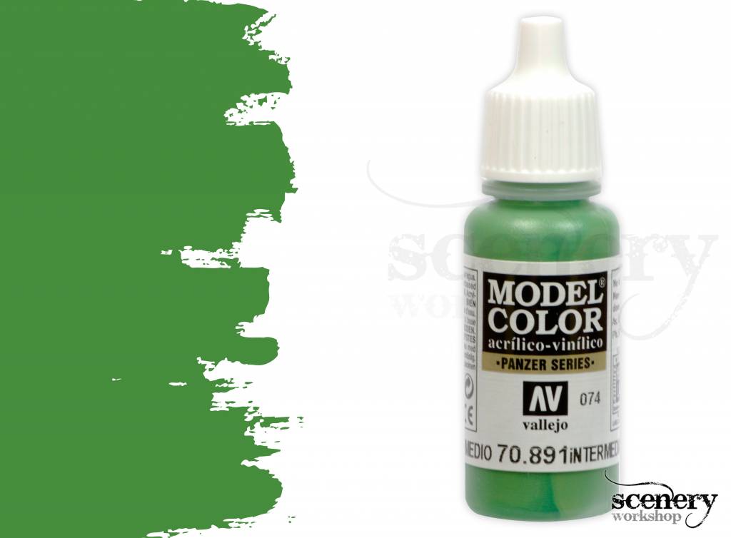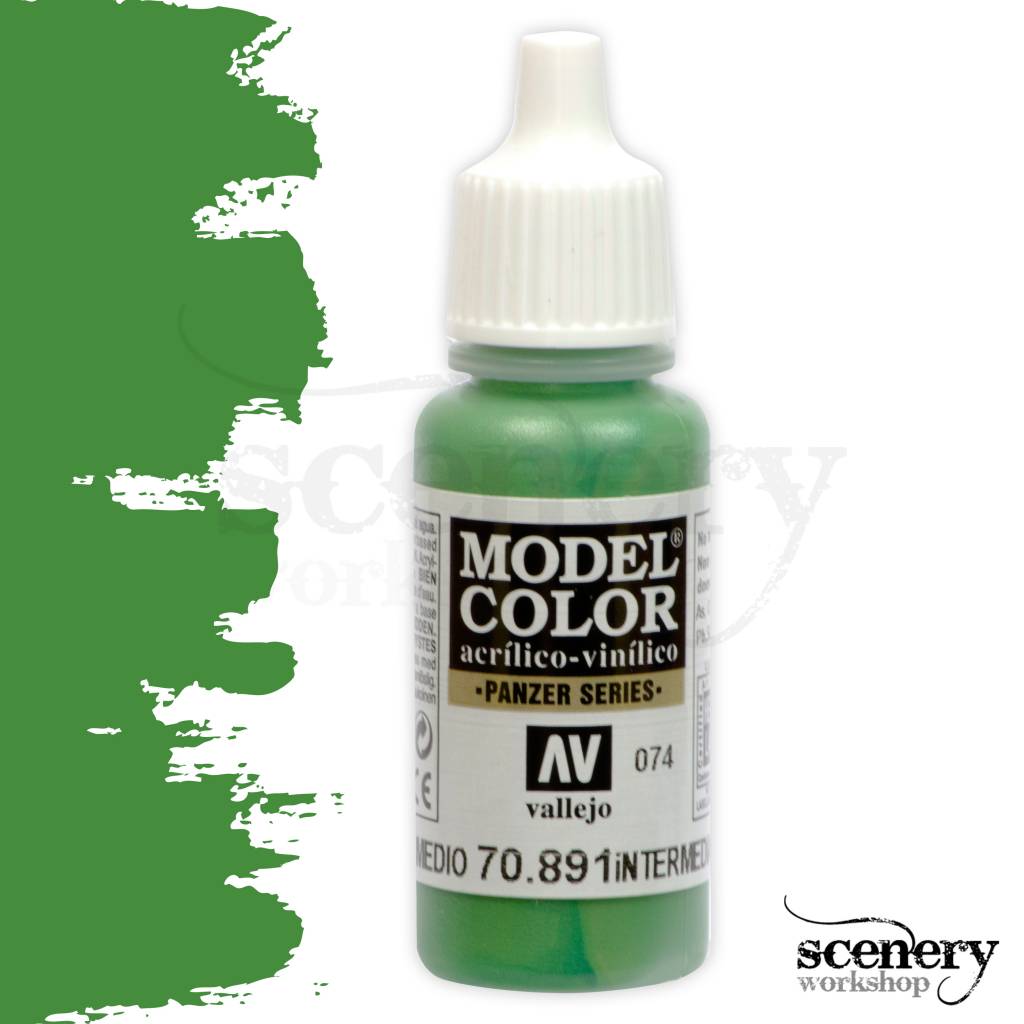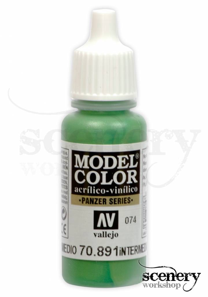 Vallejo Model Color Intermediate Green maakt deel uit van het Model Color programma van het merk Vallejo en is een groene acrylverf in een 17ml. eyedropper potje.