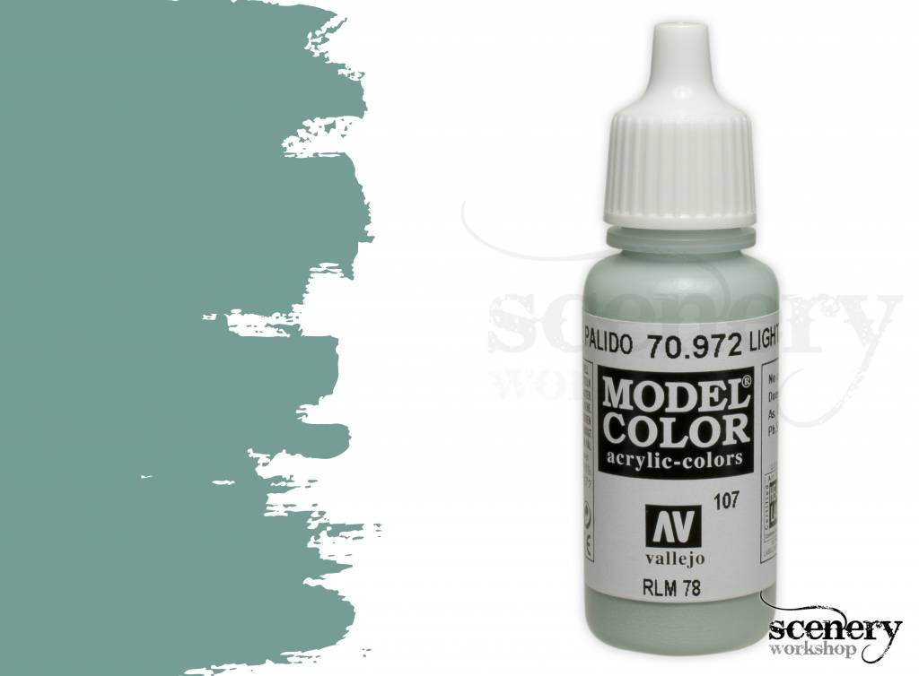 De kleur van Vallejo Model Color Light Green Blue (70.972) is vergelijkbaar met: RLM: 78; Gunze H-418; Humbrol 65; Revell: 55; Tamiya XF23; Vallejo Model Air: 71101.