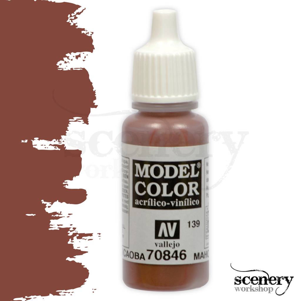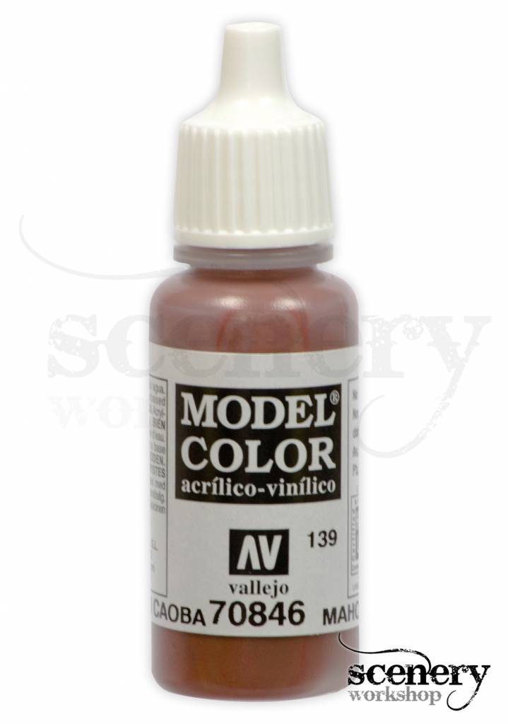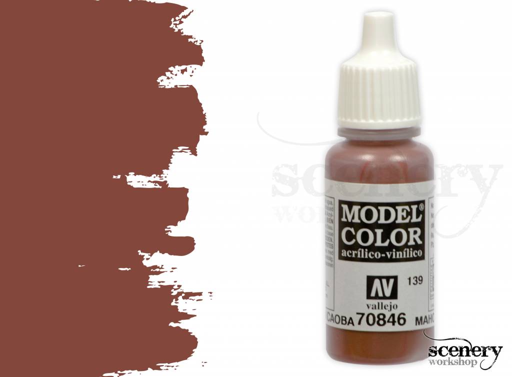 Vallejo Model Color Mahogany Brown maakt deel uit van het Model Color programma van het merk Vallejo en is een mahonie roodbruine acrylverf in een 17ml. eyedropper potje.