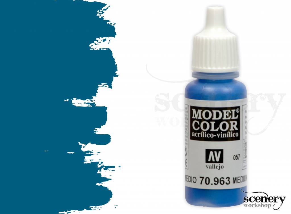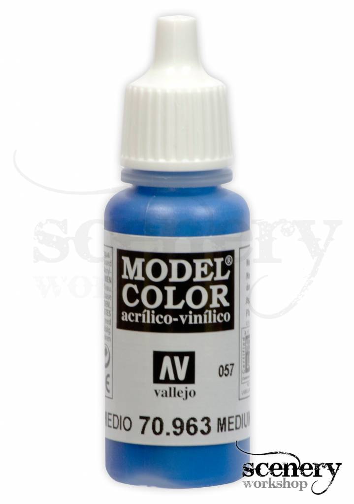 Vallejo Model Color Medium Blue maakt deel uit van het Model Color programma van het merk Vallejo en is een blauwe acrylverf in een 17ml. eyedropper potje.