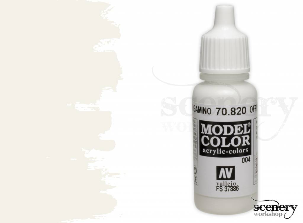 Vallejo Model Color Off White maakt deel uit van het Model Color programma van het merk Vallejo en is een gebroken witte acrylverf in een 17ml. eyedropper potje.