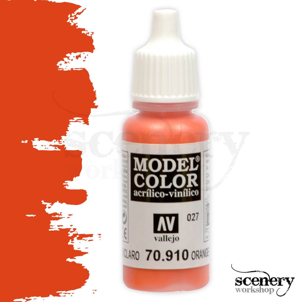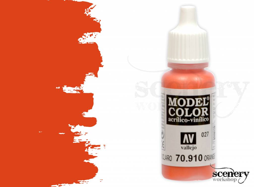 De Model Color-formule bestaat uit permanente pigmenten voor gedetailleerd werk; ook deze oranje rode kleur is compleet lichtvast en opaque, uitgezonderd de fluoriscerende en transparante kleuren die semi-opaque zijn.De kleuren zijn gekozen met de hulp en het advies van de beste modelschilders uit verschillende landen.Het Model Color programma bevat een enorm gamma aan kleuren en heeft daarnaast een interessante collectie mediums en vernissen speciaal ontworpen voor Miniatuur en Modelschildering.