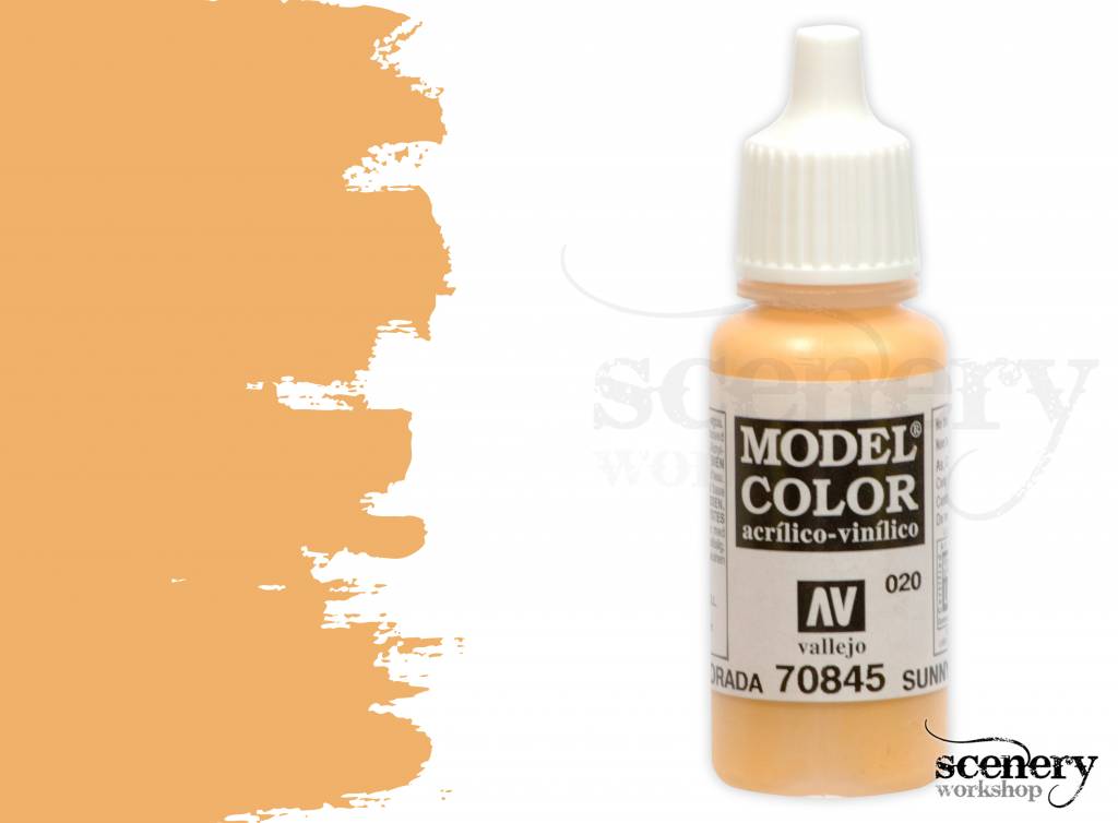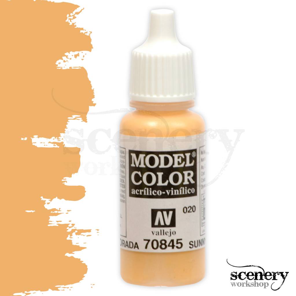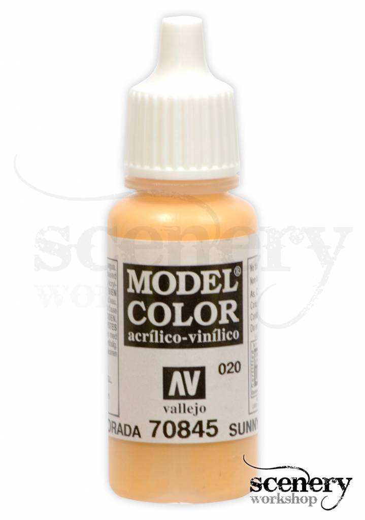 Vallejo Model Color Sunny Skintone maakt deel uit van het Model Color programma van het merk Vallejo en is een licht huidskleurige acrylverf in een 17ml. eyedropper potje.