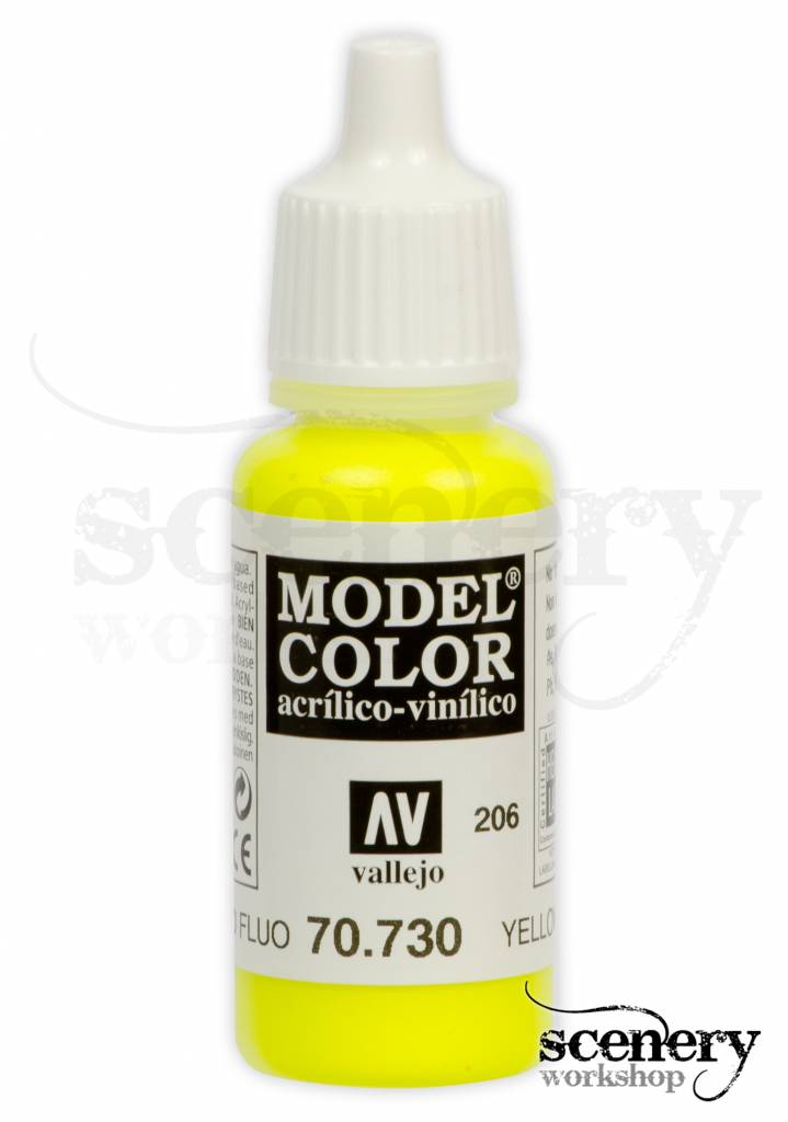 Vallejo Model Color Yellow Fluo is fluoriserende gele verf die je perfect kunt gebruiken als je een mooi lichteffect op je miniatuur wilt bereiken. Denk maar eens aan de lichtgevende wapens of de vlammen op je miniaturen. Zelfs door een klein beetje op wit toe te passen straalt het meer licht uit (hiervoor kun je ook de Fluo Blauw van ModelColor gebruiken). Deze spatten nu dan van het speelbord af!