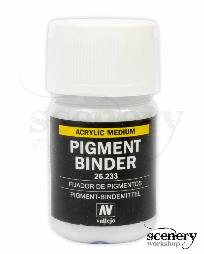 Vallejo Pigment Binder 30 ml. is een kleurloos medium dat gemixed wordt met acryl verven; het verbetert de vloeibaarheid, vergroot de transparantie en vertraagt de droogtijd. Pigment Binder is goed voor het aanbrengen van schaduwen, glazes en verwerken van pigmenten.