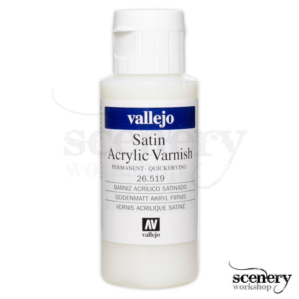 Vallejo Satin Varnish - Zijdeglans acryl vernis op waterbasis met een nieuwe sneldrogende formule en een acryl resin van een buitengewone stevigheid en hardheid. Het droogt met een zachte zijdeglans op waardoor waardoor je kleuren op je miniaturen mooi uit komen. Het beschermd modellen tegen stof en krassen, vuil en vocht. Acryl vernis kan pas aangebracht worden als de verflagen compleet gedroogd zijn (bij voorkeur 24 uur wachten met opbrengen). De flacon bevat 60ml. vernis.