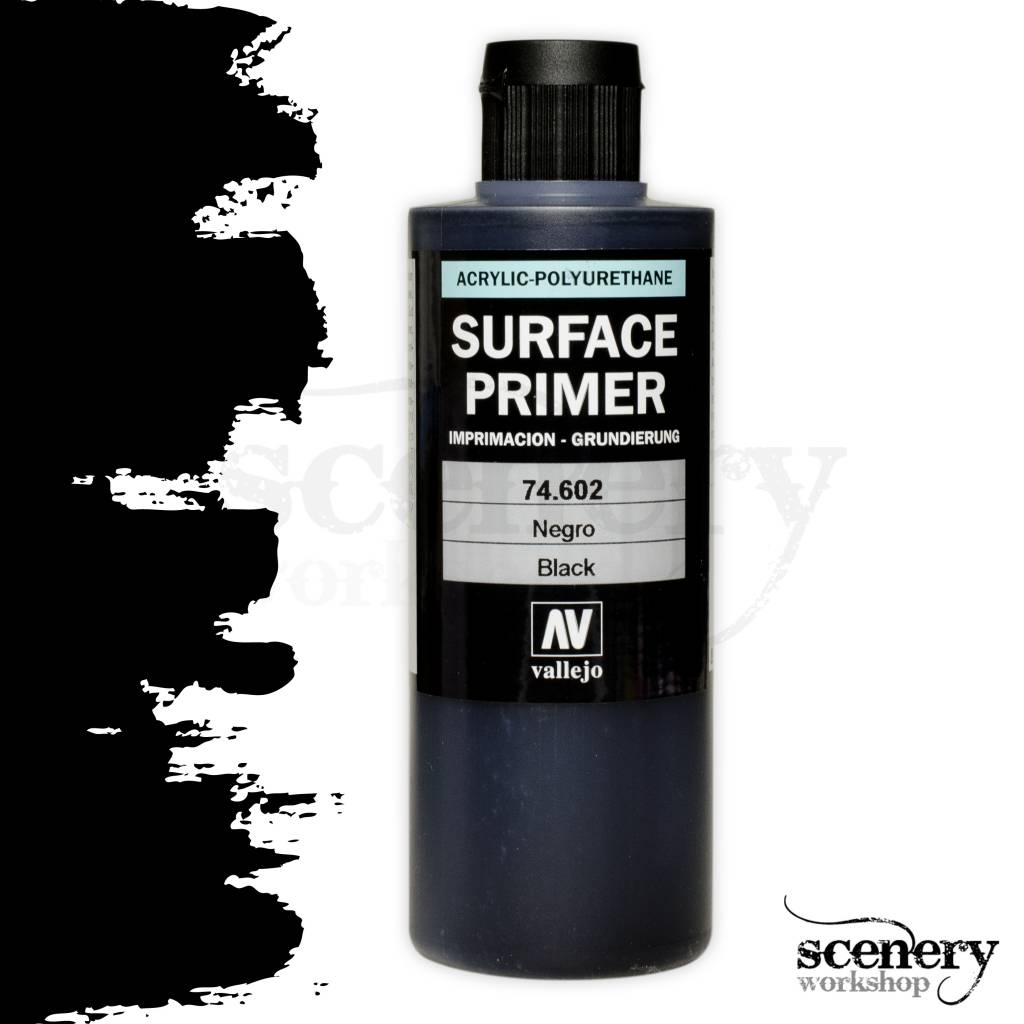 Vallejo Black Surface primer 200 ml. is een grote pot zwarte grondverf op polyurethaan waterbasis. Deze grondverf kan direct gebruikt worden of gemixed worden met bijvoorbeeld mediums of vernissen. De grondverf nivelleert zichzelf en droogt mat en hard op, waarbij het de details bewaard. Perfect voor plastic, resin en metalen en kan heel goed gebruikt worden in combinatie met Airbrush. Surface Primer kan eenvoudig gereinigd worden met water, of bij hardnekkig vuil adviseren we Airbrush Cleaner.