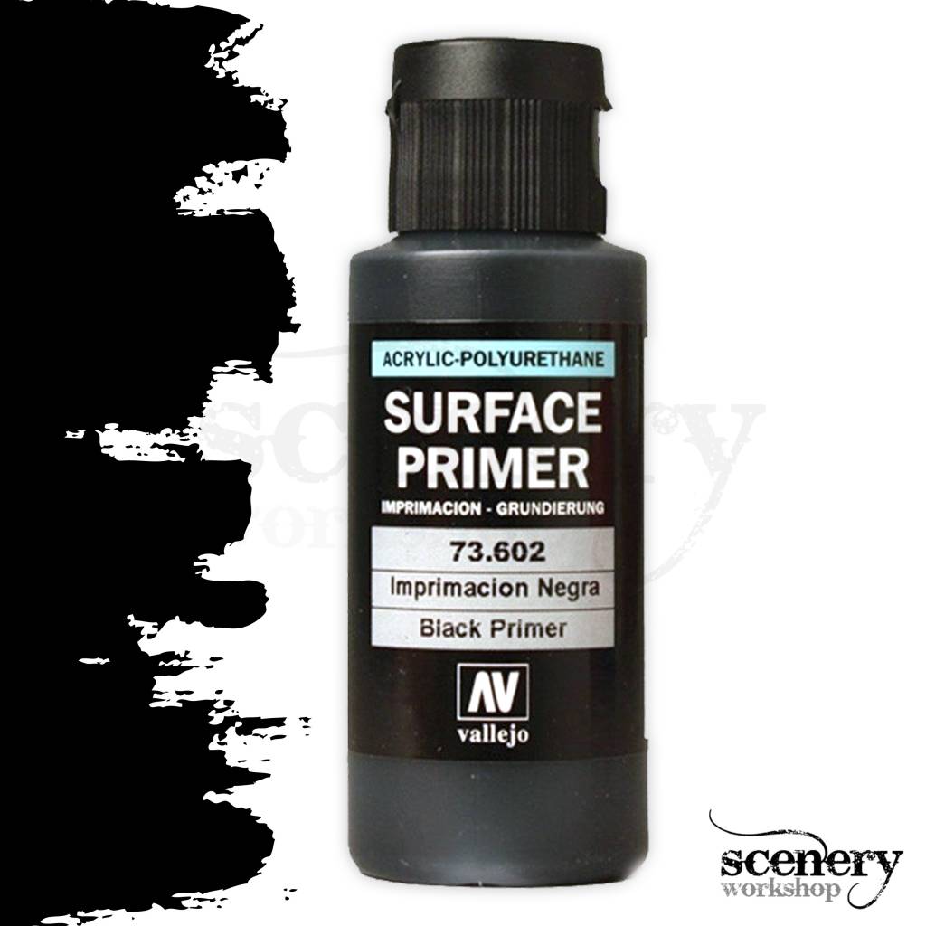 Vallejo Surface Primer Black (60ml. 73602) is een zwarte grondverf op polyurethaan waterbasis. Deze grondverf kan direct gebruikt worden of gemixed worden met bijvoorbeeld mediums of vernissen. De grondverf nivelleert zichzelf en droogt mat en hard op, waarbij het de details bewaard. Perfect voor plastic, resin en metalen en kan heel goed gebruikt worden in combinatie met Airbrush. Surface Primer kan eenvoudig gereinigd worden met water. Bij hardnekkig vuil adviseren we Airbrush Cleaner.