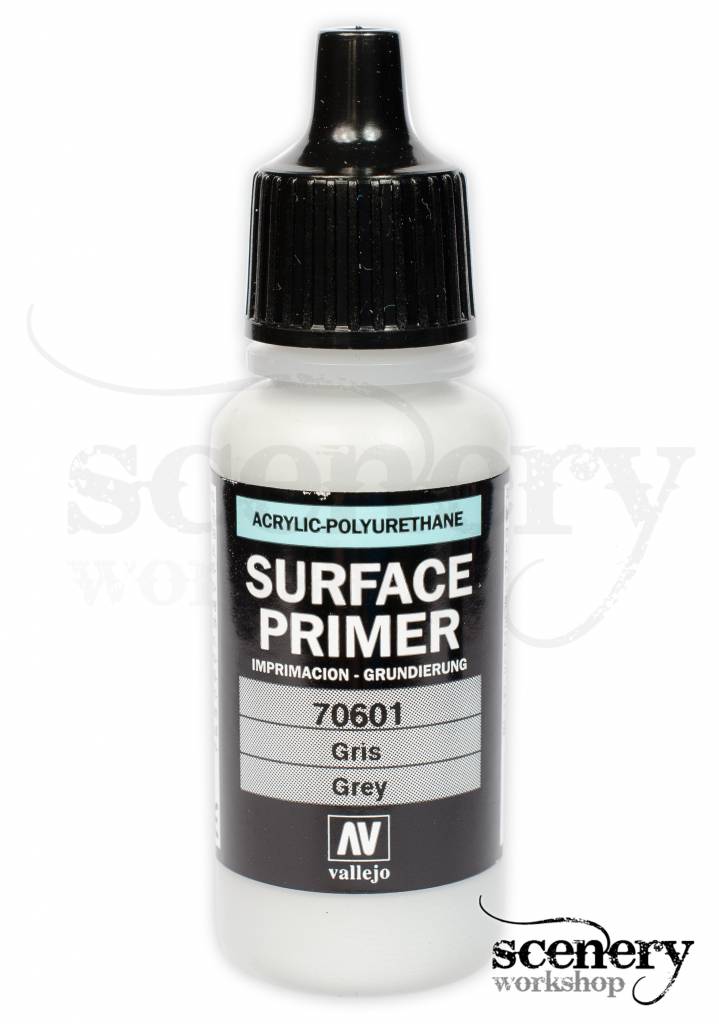 Vallejo Grey Surface primer is een grijze grondverf op polyurethaan waterbasis. Deze grondverf kan direct gebruikt worden of gemixed worden met bijvoorbeeld mediums of vernissen. De grondverf nivelleert zichzelf en droogt mat en hard op, waarbij het de details bewaard. Perfect voor plastic, resin en metalen en kan heel goed gebruikt worden in combinatie met Airbrush. Surface Primer kan eenvoudig gereinigd worden met water. Bij hardnekkig vuil adviseren we Airbrush Cleaner.