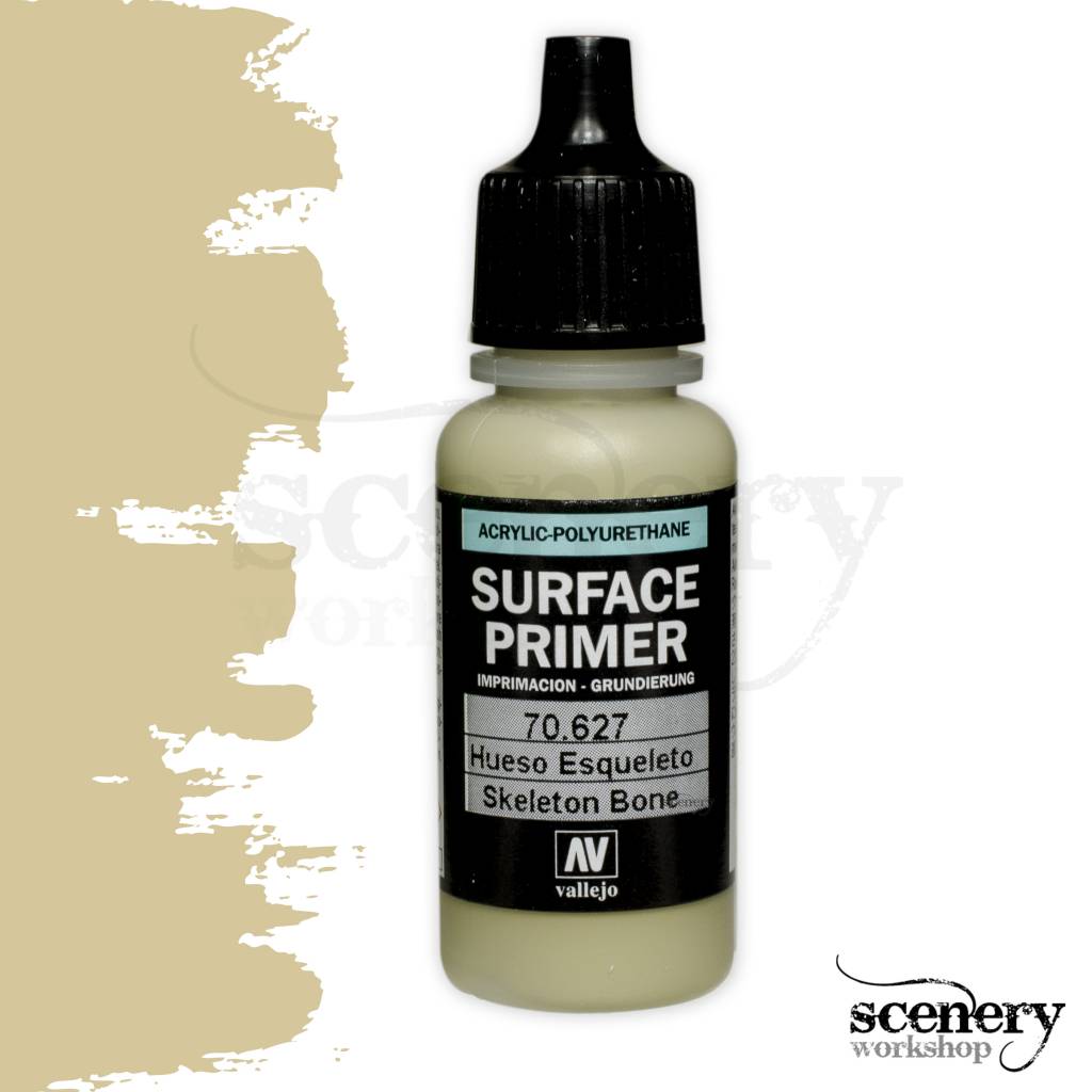 Vallejo Surface Primer Skeleton Bone (17ml. 70627) is een ivoorkleurige grondverf op polyurethaan waterbasis. Deze grondverf kan direct gebruikt worden of gemixed worden met bijvoorbeeld mediums of vernissen. De grondverf nivelleert zichzelf en droogt mat en hard op, waarbij het de details bewaard. Perfect voor plastic, resin en metalen en kan heel goed gebruikt worden in combinatie met Airbrush. Surface Primer kan eenvoudig gereinigd worden met water. Bij hardnekkig vuil adviseren we Airbrush Cleaner.