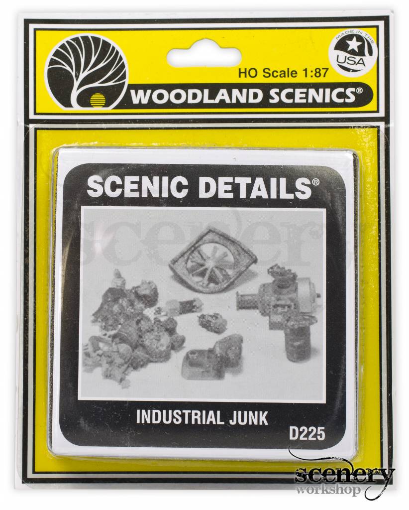Woodland Scenics Industrial Junk is een verzameling van oude generatoren, olievaten, betonblokken, ventilatoren en meer restanten van heavy duty work. Deze verzameling is op HO formaat dat wil zeggen 1:87, iets kleiner dan 28mm, maar misstaat niet als scenery op deze schaal. Een realistische look geven aan garages, fabrieken, boerderijen en nog veel meer dat is wat Woodland Scenics Industrial Junk doet.
