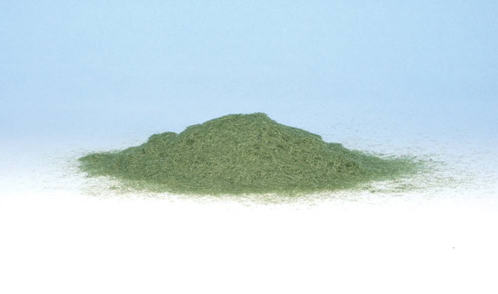 Woodland Scenics Static Grass Flock Medium Green wordt gebruikt om Zomer-groen gras te maken, maar kan ook goed gebruikt worden aan de zijkant van wegen en in sloten.