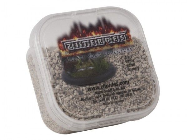 Ziterdes Basing & Battleground Gravel Natural Stone Fine, er is niets beter voor het opbouwen van tabletop miniaturen. Niets is meer realistisch dan het gebruik van natuurlijke producten. Daarom zijn er geselecteerde natuurstenen van Ziterdes voor het ontwerpen van tabletopgames. Alle stenen zijn fijn gebroken en gesorteerd in grootte.