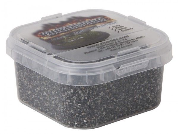 Ziterdes Basing & Battleground Natural Stone Basalt Dark Grey Fine, er is niets beter voor het opbouwen van tabletop miniaturen. Niets is meer realistisch dan het gebruik van natuurlijke producten. Daarom zijn er geselecteerde natuurstenen van Ziterdes voor het ontwerpen van tabletopgames. Alle stenen zijn fijn gebroken en gesorteerd in grootte.